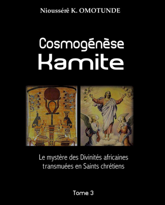 Comment, pourquoi et quand nos Divinités négro-africaines sont-elles devenues des Saints chrétiens ? Pourquoi kes tours de passe passe ont soudainement fait des émules parmi les rédacteurs des trois religions monothéistes ? Si la religion reste un enjeu de reconquête majeur pour le Monde Panafricain, privés de l’accès à notre boîte noire historico-culturelle, nous sommes devenus des proies faciles pour tous les diseurs de bonne aventure. Mais, si la nature cyclique du temps nous ramène inexorablement à notre identité spirituelle africaine, c’est qu’il y a bien une raison. Pour l’égyptologue François Daumas, ce qui << paraître digne d’intérêt dans ce concept d’un démiurge initial, qui apparaît (en Afrique noire ) dès la fin du IVème millénaire avant notre ère (…) c’est qu’il semble bien l’inspirateur du Dieu unique, invisible mais omniprésent, que vont prendre pour modèle, toutes les religions monothéistes>> ultérieures. Mais loin de se limiter à << prendre pour modèle >> notre << Nétcher Oua >< (Dieu unique ) africain, ce sont carrément toutes nos divinités, nos cultes et nos rituels qui ont été pillés, blanchis et dénaturés. Vous souhaitez le voir pour croire ? Ce tome 3 de la série << Cosmogénèse kamite >>, ne va pas seulement vous permettre d’apprécier les dégâts, il va aussi vous démystifier certains subterfuges rituels. Et s’il y a eu manifestement qu’une seule Vérité, tout comme l’homme, elle est bien née en Afrique noire !